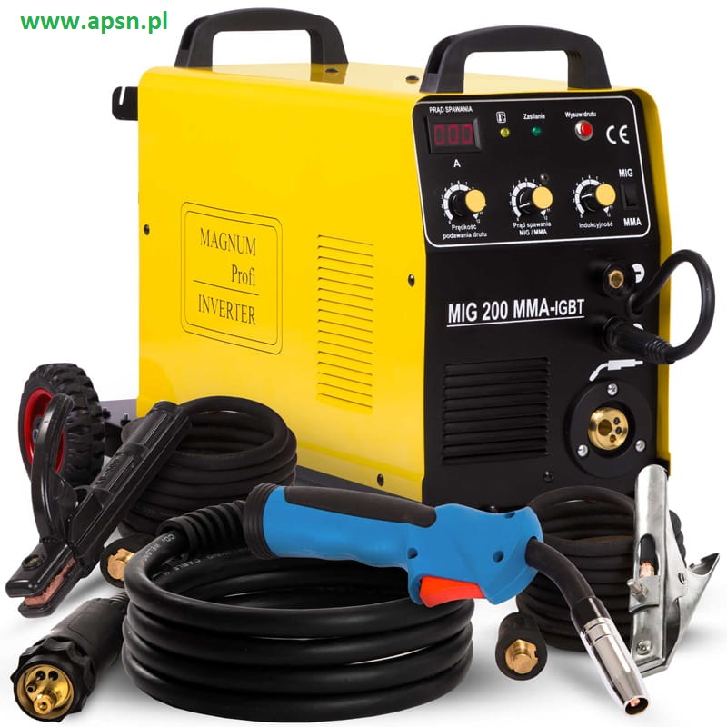 Urządzenie Magnum MIG 200 W MMA IGBT jest profesjonalnym półautomatem spawalniczymi przeznaczonym do ręcznego, elektrycznego spawania stali niskowęglowej, niskostopowej (MAG), stali stopowych (MIG) oraz aluminium i jego stopów.